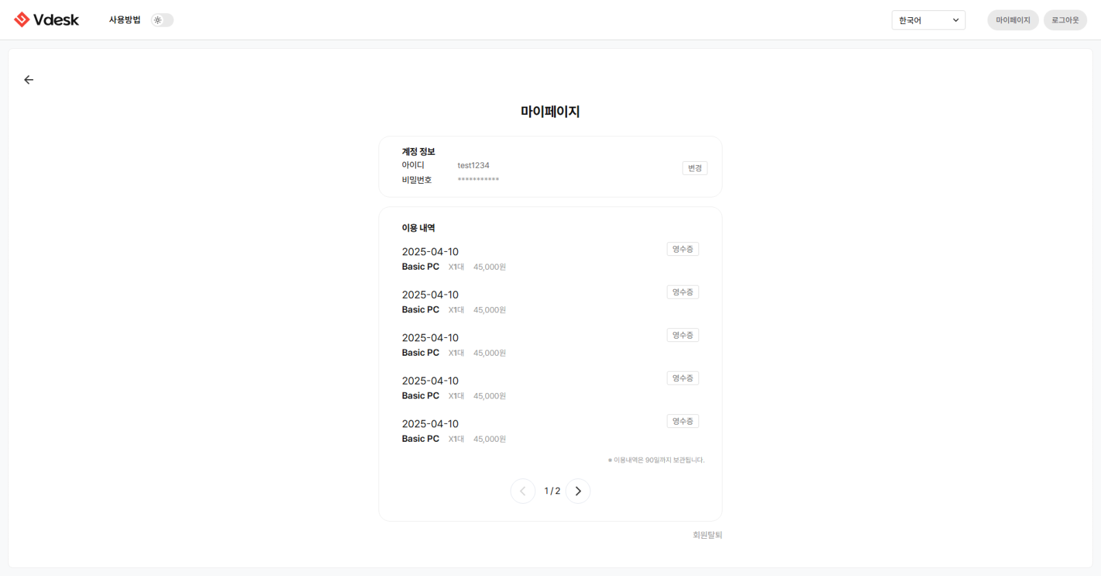2025 Vdesk 페이지 정보 빈거 바로가기 ☰목록 본문 Vdesk - 웹 구동 페이지 ui제작-실 구동 페이지는 제작중-화면 ui 위주로 ui 퍼블리싱 및 액션 스크립트 구현-블레이저 프레임워크 기반으로 퍼블리싱 https://sianserv.dothome.co.kr/pcweb/index.html 69회 연결 이전글신화ENG 리뉴얼 25.07.30 다음글자사몰구축 25.06.30