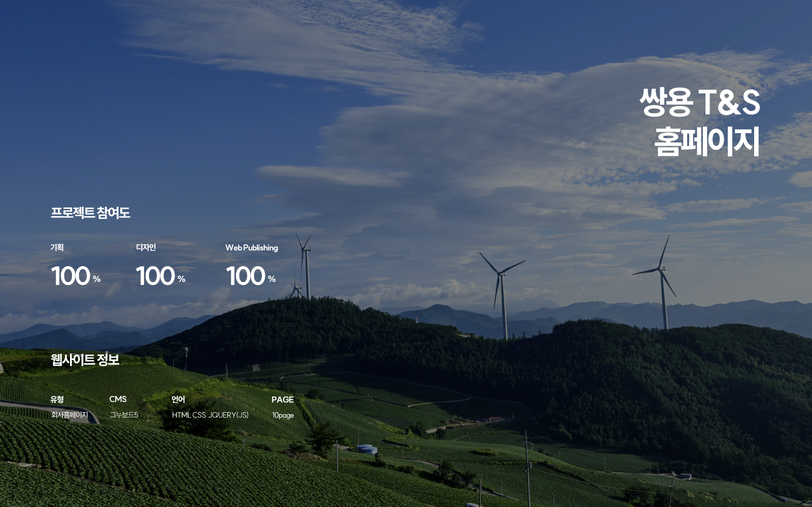 2023~2024 쌍용T&S 페이지 정보 빈거 바로가기 ☰목록 본문 쌍용T&S 메인 시안 및 사이트 전체 퍼블리싱 진행 http://ssytns.co.kr/ 75회 연결 이전글세일메이트(PC형) 25.07.30 다음글놀핏 25.07.30