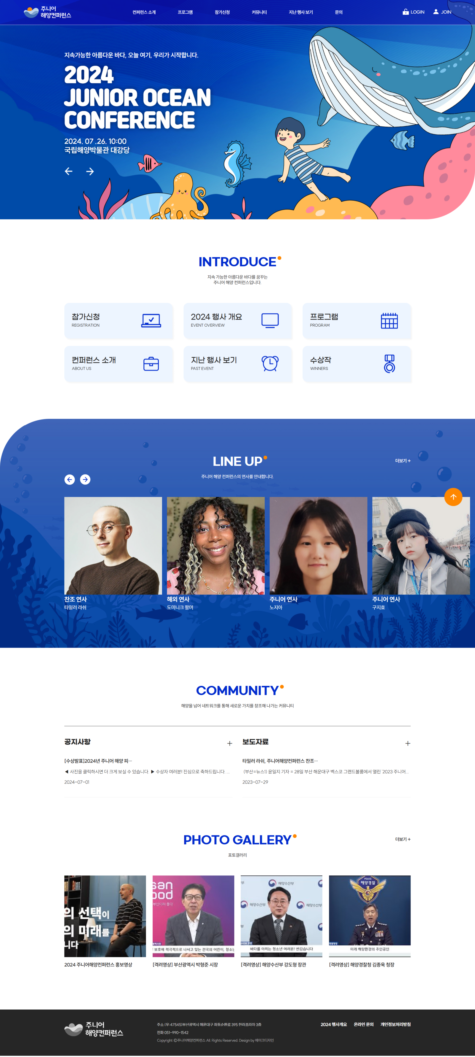 2023~2024 주니어해양컨퍼런스 페이지 정보 빈거 바로가기 ☰목록 본문 사이트명: 주니어해양컨퍼런스작업범위 :메인 시안, 메인 퍼블리싱, 서브페이지 전체 시안, 웹사이트 전체 퍼블리싱작업기여도 :100% http://juniorocean.ing25.co.kr/shop/ 132회 연결 이전글Global SP 25.07.30 다음글주식회사 창우 25.07.30